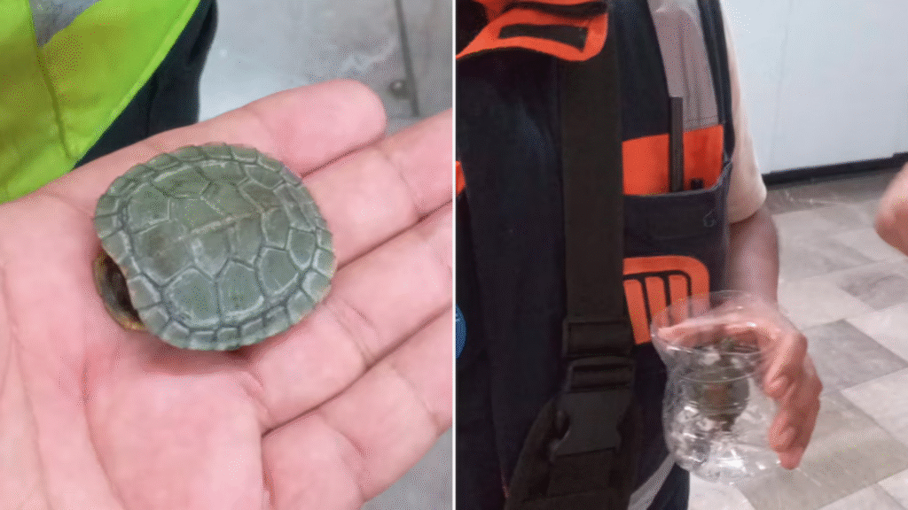 Tortuga es rescatada de las vías en la Línea 2 del Metro de la CDMX